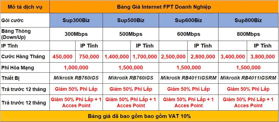 Gói cước Cáp quang FPT cho Doanh nghiệp