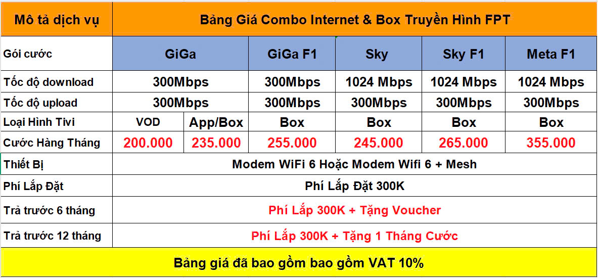 – Gói combo cơ bản: Internet + Truyền Hình 4K Ultra HD chỉ từ 200.000đ/Tháng