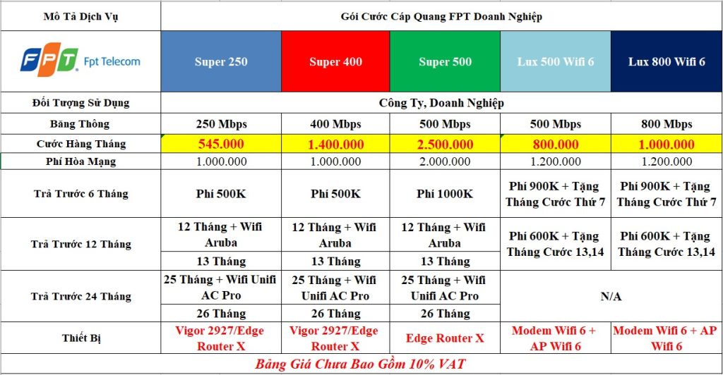 Gói cước Lux FPT – Chuẩn Wifi 6